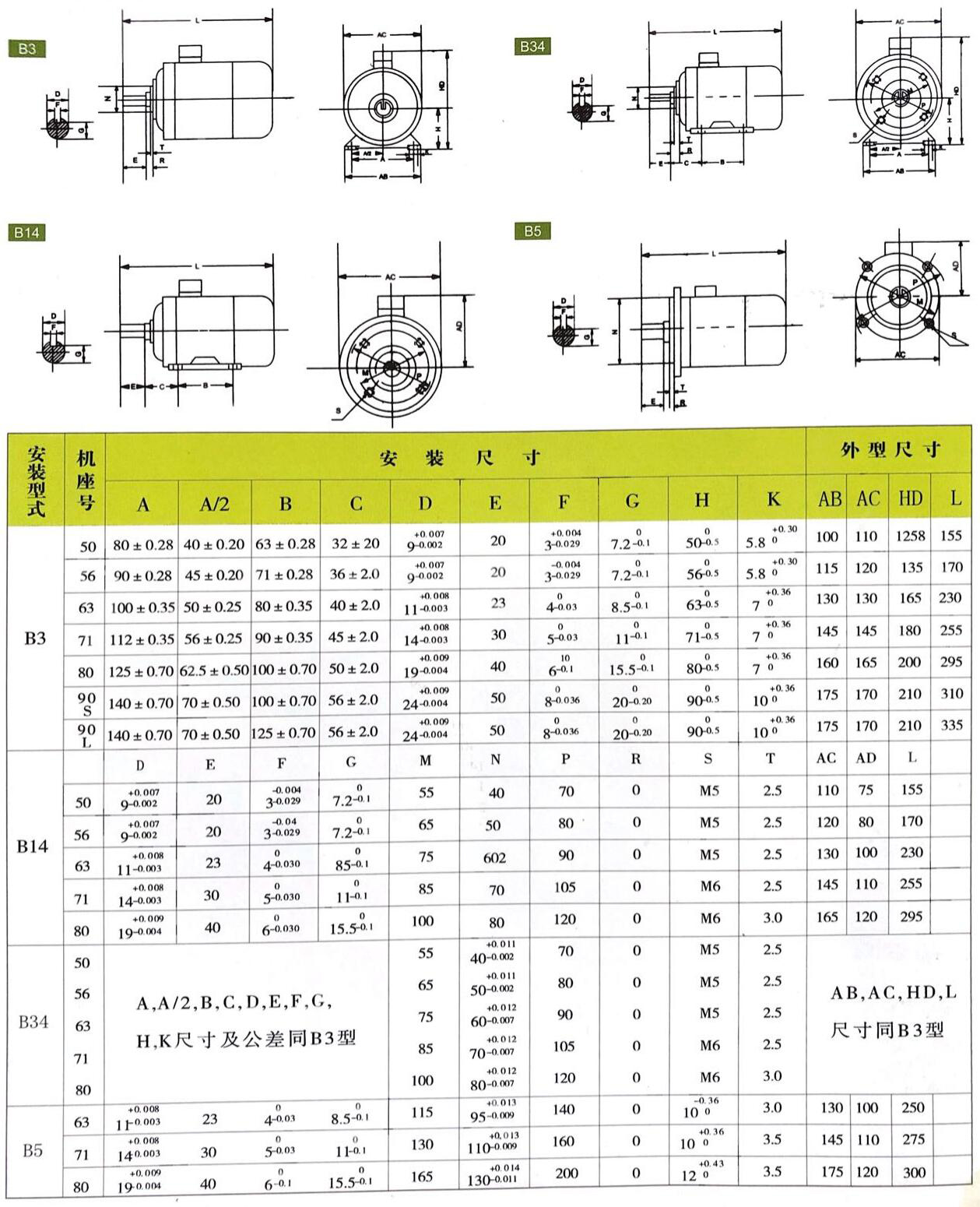 三、YS系列三相異步電機按安裝方式有下列四種基本形式。
