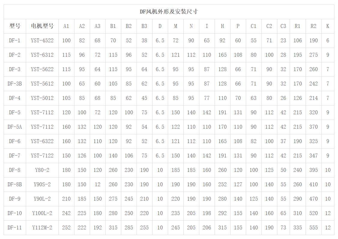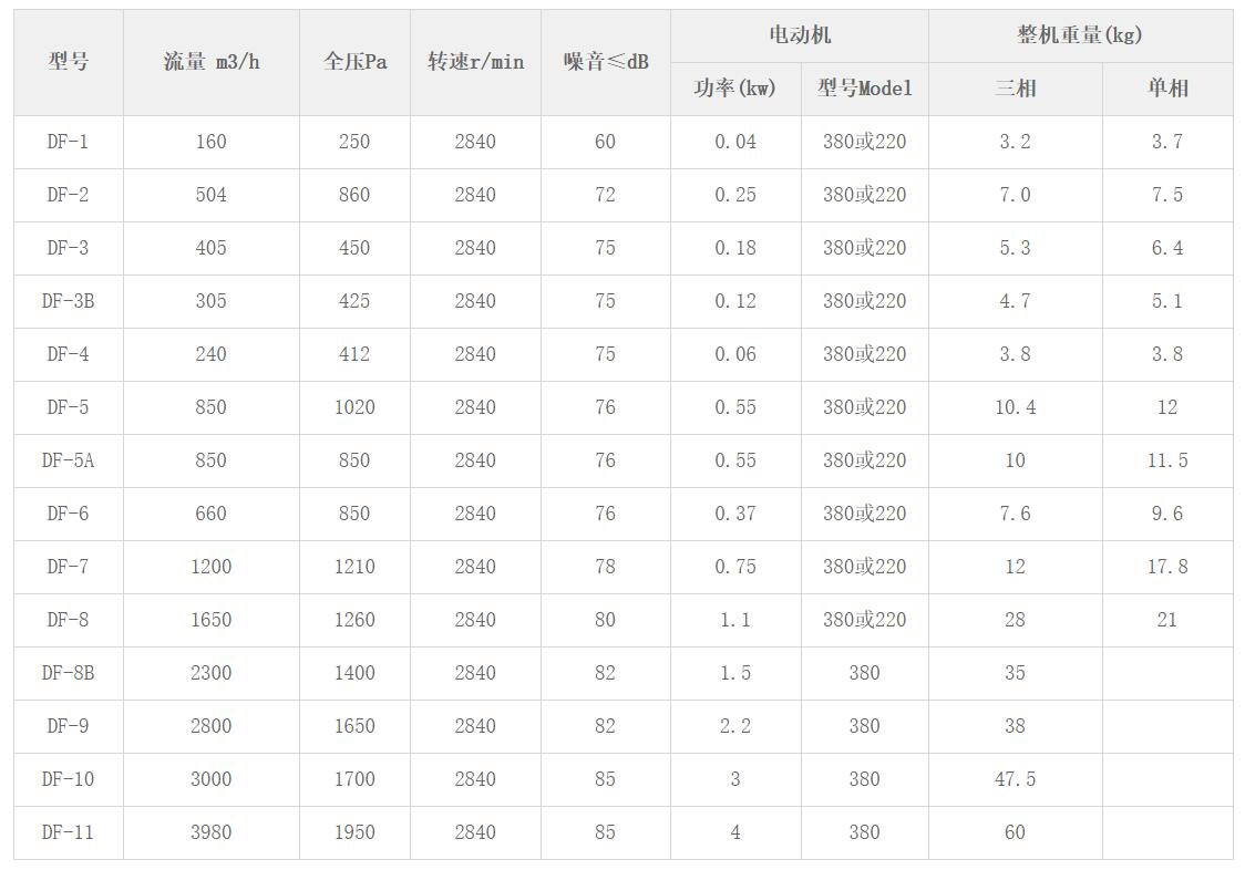 DF系列離心風(fēng)機性能參數(shù)